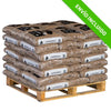 Palé con 72 sacos de pellet de 15 kg cada uno, combustible natural que genera un alto poder calorífico con muy bajos niveles de CO₂, lo que contribuye a reducir las emisiones de gases perjudiciales a la atmósfera. Además, no produce olores por lo que proporciona un calor ecológico, limpio y seguro. Contenido: 630 kg.